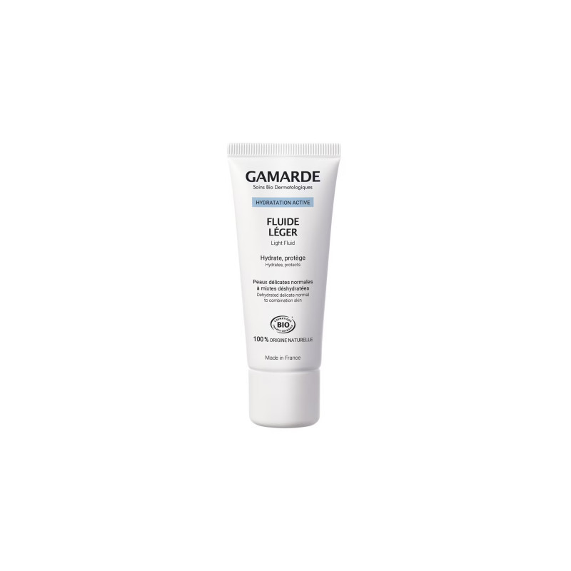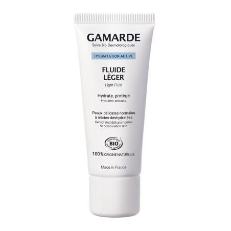 Hydratation active fluide léger de GAMARDE, la beauté certifiée BIO d’origine naturelle dans un soin conçu pour hydrater et apaiser les peaux normales à mixtes.