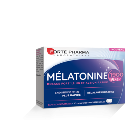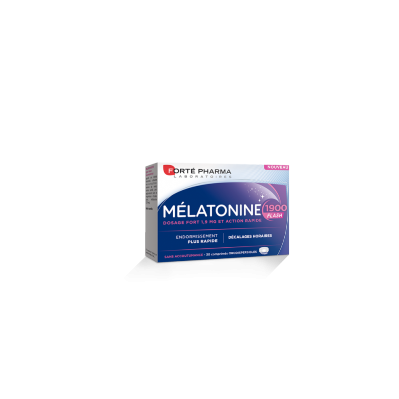 MÉLATONINE 1900 FLASH propose un dosage fort de 1,9 mg de mélatonine, pour un endormissement plus rapide (1) en cas de difficultés à trouver le sommeil, ou en cas de décalage horaires (jet-lag) (2). Sa forme orodispersible fond sous la langue sans ajout d’eau, et permet une assimilation rapide par l’organisme.