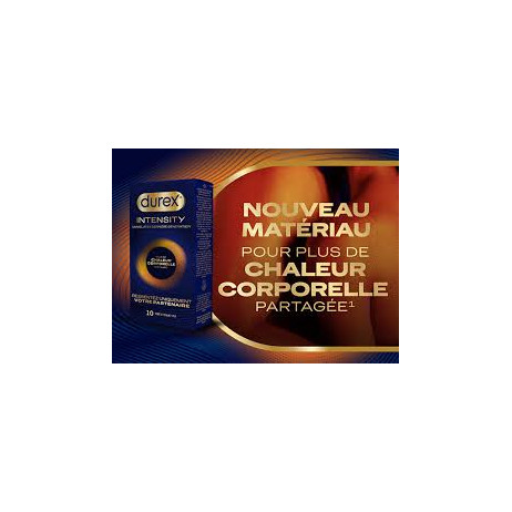Pourquoi tu vas aimer DUREX Intensity : les nouveaux préservatifs Durex Intensity sans latex sont fabriqués à partir de nitrile, une matière qui épouse parfaitement la forme du pénis, et qui permet de ressentir plus de chaleur corporelle qu'avec du latex. Ressentez uniquement votre partenaire grâce aux préservatifs Intensity, les plus fins de la gamme Durex.