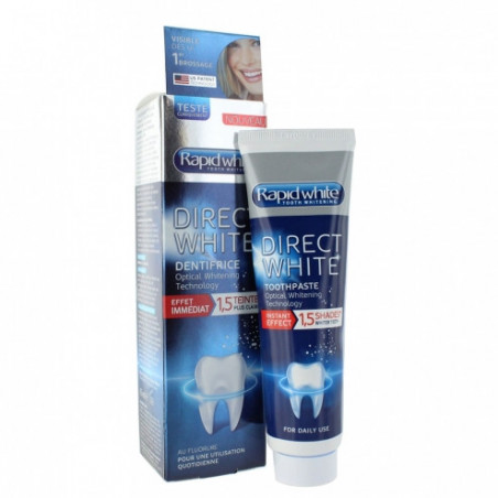 Par rapport au dentifrice classique, ce dentifrice Direct White permet, au moment du brossage, de gagner 1,5 teinte d'éclat immédiat grâce à un dépôt de pigments blancs sur la surface de la dent.
