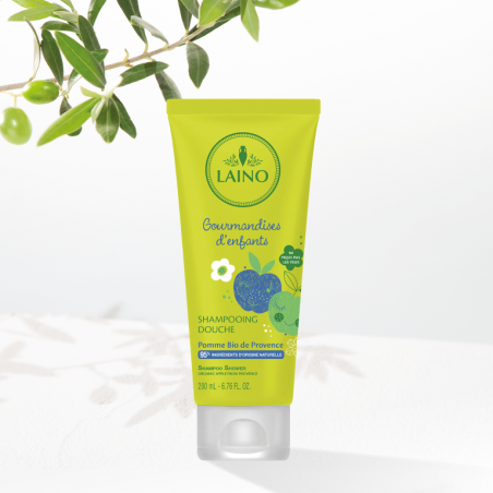 Laino a sélectionné le meilleur du bassin méditerranéen pour formuler le Shampooing douche Pomme 3 en 1, corps, cheveux et visage. Grâce à l’extrait de pomme BIO et à la glycérine hydratante*, ce shampooing douche nettoie en douceur, hydrate* et parfume la peau de notes fruitées gourmandes, pour petits et grands.