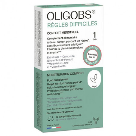 OLIGOBS® Règles Difficiles est fabriqué en France et ne contient pas d’allergène, d’ingrédients d’origine animale.