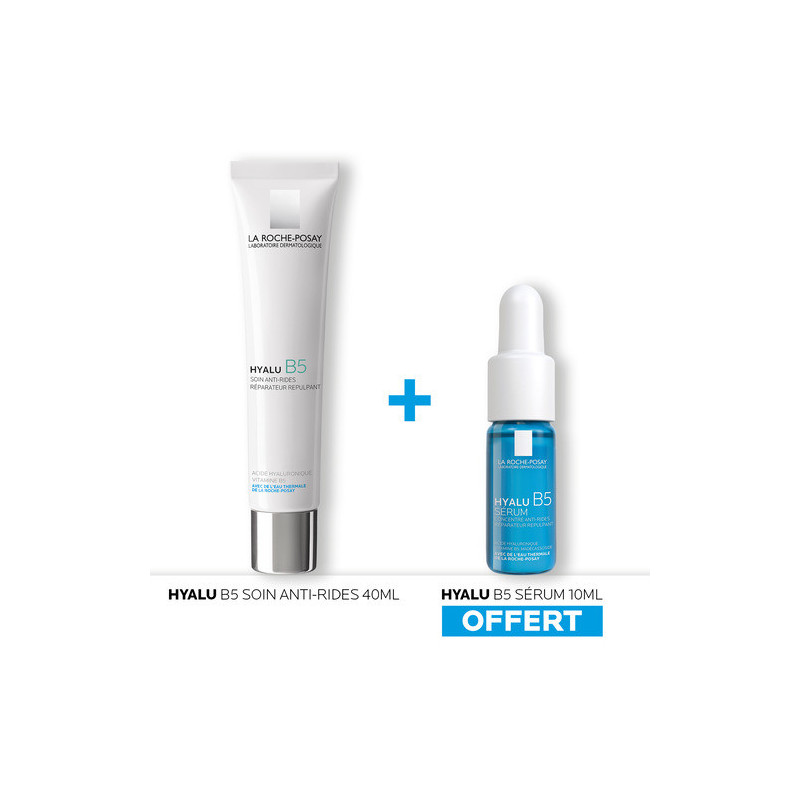- La Roche-Posay Hyalu B5 Sérum Concentré Anti-Rides Réparateur Repulpant 10 ml Offert est un sérum anti-rides à la formule régénérante, associée à du madécassoside pour repulper, réparer la barrière cutanée et favoriser la régénération de la peau.Le madécassoside, extrait de centella asiatica, contribue à combler les rides. Cet actif apaisant booste l'effet réparateur de la vitamine B5 et l'effet repulpant de l'acide hyaluronique.Immédiatement, la peau paraît plus rebondie et plus souple. Le teint est frais et éclatant. Les rides et ridules sont visiblement réduites.