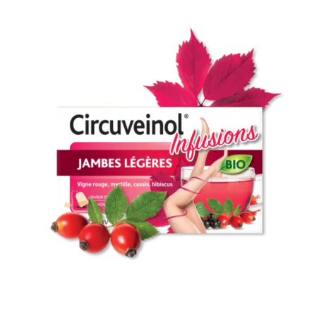 Circuveinol® Jambes Légères Infusion BIO, vendu sur notre site de parapharmacie discount, et issu de la recherche des Laboratoires Nutreov, améliore la circulation grâce à une formule BIO au savoureux goût orange, à déguster chaud ou froid.