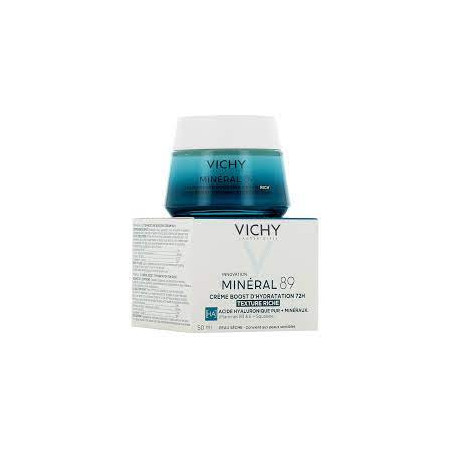 La Crème Riche de Jour Mineral 89 Boost d'Hydratation des Laboratoires Vichy hydrate en profondeur les différentes couches de l'épiderme et laisse donc la peau repulpée, souple et rebondie.