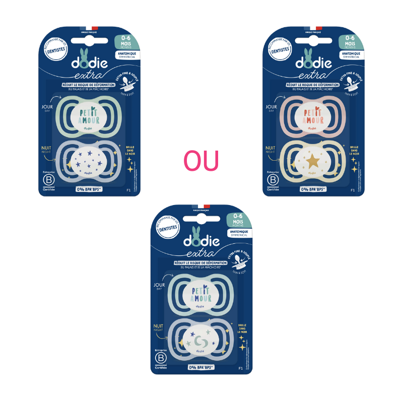 Recommandées par les professionnels de santé, notamment les dentistes, dentistes pédiatriques et orthodontistes¹, les sucettes Dodie allient confort et innovation pour le bien-être de votre bébé.