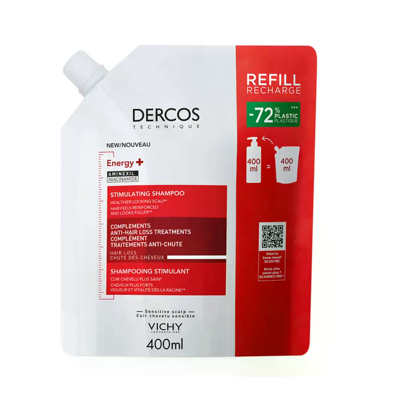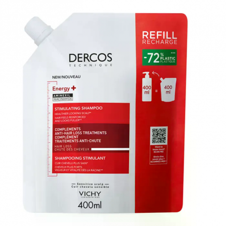 Vichy Dercos Shampooing Éco-Recharge Énergisant Anti-Chute à l'Aminexil – 400 ml