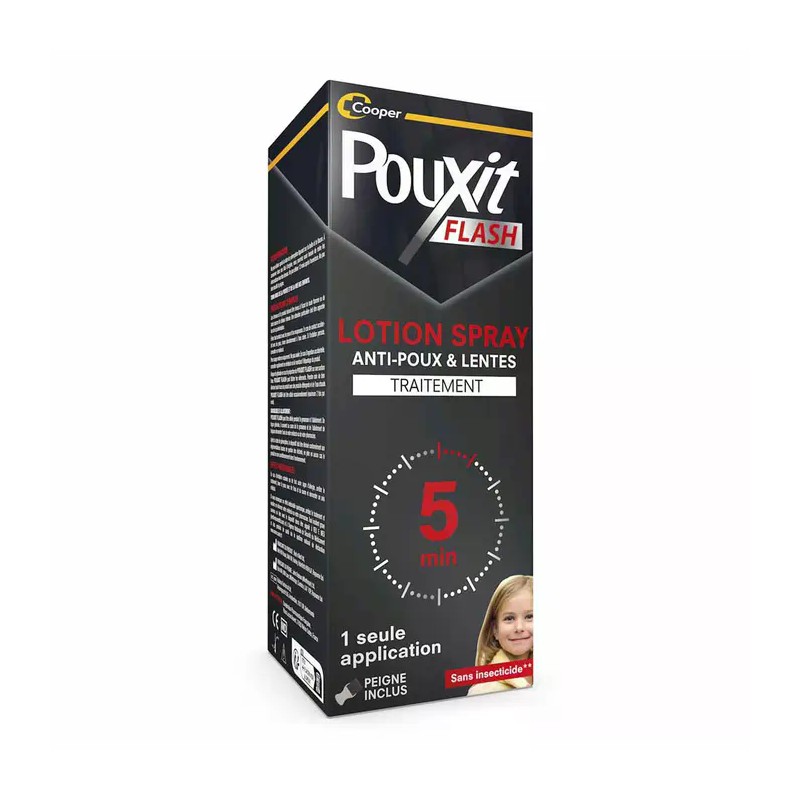 Le Pouxit Flash est une lotion innovante conçue pour éliminer efficacement les poux et les lentes du cuir chevelu. Sa formule agit par effet physique, obstruant les orifices respiratoires et excrétoires des parasites, entraînant leur mort en seulement 5 minutes. Sans insecticide, sans odeur, incolore et sans huile essentielle ni alcool, il est adapté aux adultes et aux enfants dès 6 mois, ainsi qu'aux femmes enceintes et allaitantes.