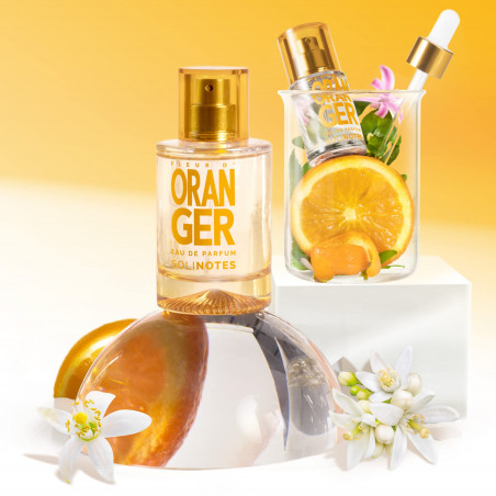 La fusion de la Bergamote et du Citron, rehaussée par la Fleur d'Oranger, apporte les bienfaits calmants dont vous avez besoin. La Rose et le Jasmin d'eau, aux vertus réconfortantes, vous enveloppent délicatement d’un baume de douceur. L’Eau de Parfum Fleur d’Oranger Solinotes se termine sur une touche finale de Miel et de Musc, pour un moment d’absolue détente.
