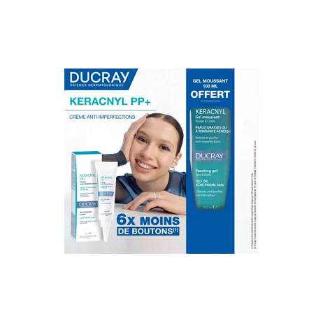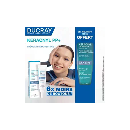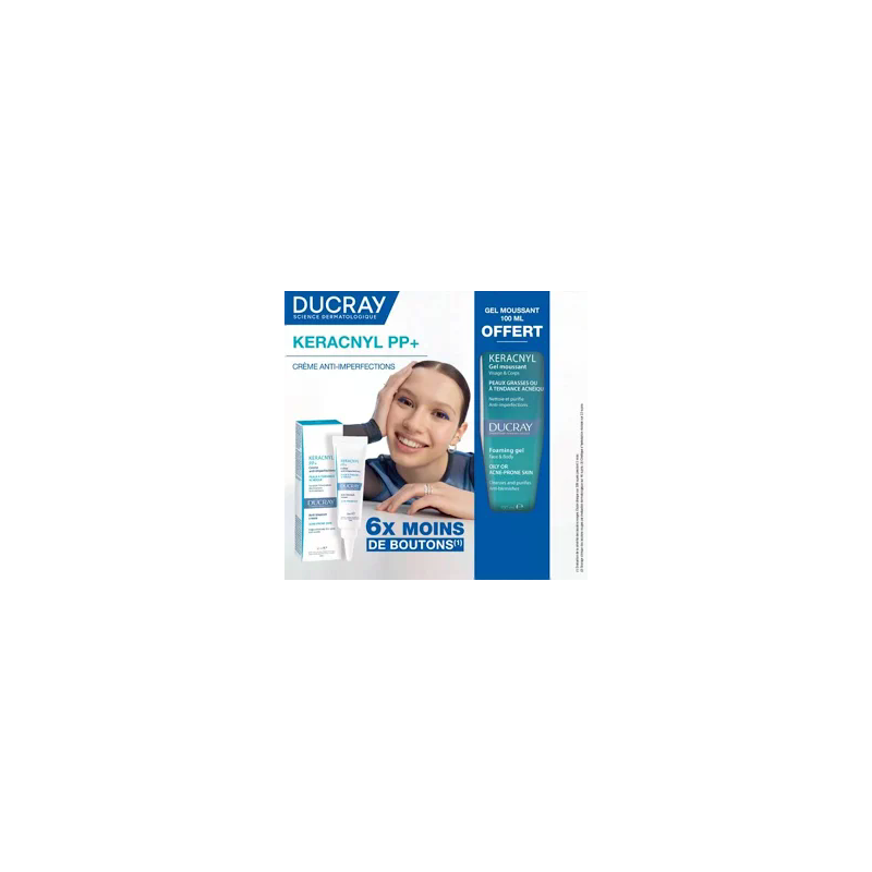 Ducray – Coffret Keracnyl Gel Moussant (100 ml, offert) + Crème Traitante PP+ (30 ml)
