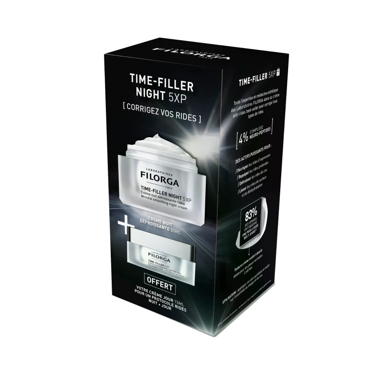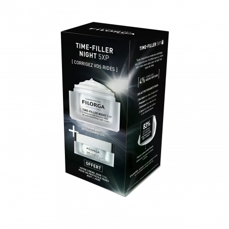 Le Coffret Time-Filler Night 5XP de Filorga est une routine anti-âge complète conçue pour cibler les cinq types de rides : rides d’expression, rides profondes, rides de surface, rides de dessèchement et rides du cou. Ce coffret comprend :