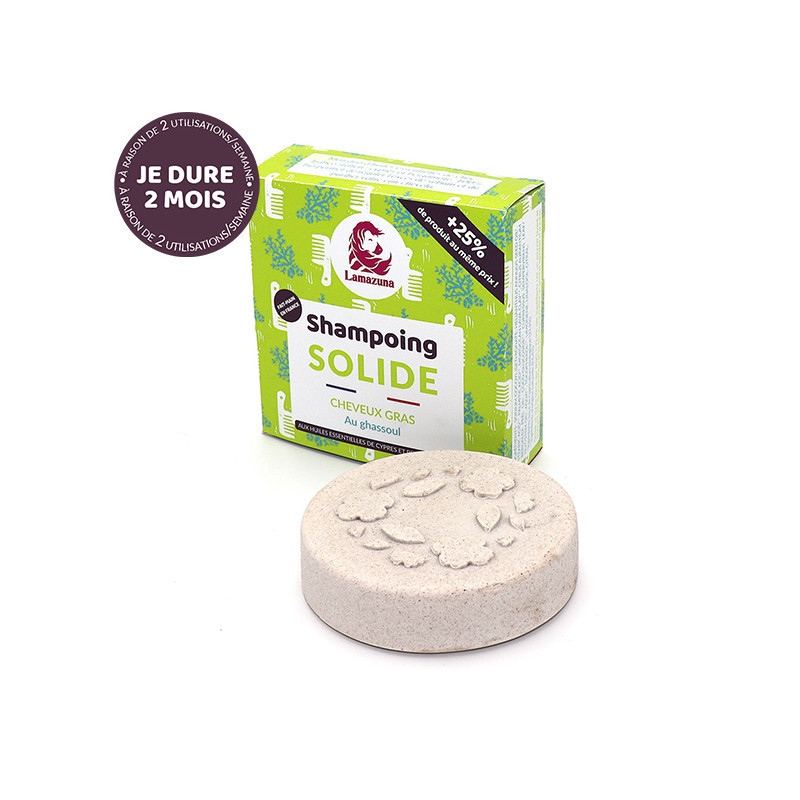 Le ghassoul est l'argile la plus indiquée pour les cheveux gras, elle absorbe le sébum et purifie le cuir chevelu sans l’agresser. Ajoutez-y un duo d'huiles essentielles bio de bergamote et de cyprès aux propriétés purifiantes et vous aurez des cheveux brillants et un sébum régulé pour plusieurs jours de tranquillité !