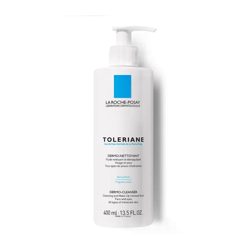 Le Toleriane Dermo-Nettoyant de La Roche-Posay est un fluide nettoyant doux, sans parfum, spécialement formulé pour les peaux sensibles, intolérantes ou sujettes aux allergies. Il nettoie et démaquille le visage et les yeux en douceur, tout en respectant l'équilibre cutané. Sa formule contient de la glycérine pour hydrater et apaiser la peau, et de l'eau thermale de La Roche-Posay pour ses propriétés calmantes.